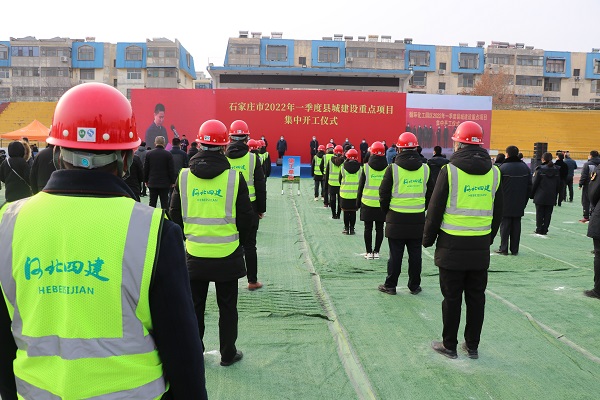 2月17日上午9點(diǎn),石家莊市2022年一季度縣城建設重點(diǎn)項目集中開(kāi)工儀式在鹿泉區舉行,主會(huì )場(chǎng)設在三分公司承建的鹿泉區體育場(chǎng)地下停車(chē)場(chǎng)項目現場(chǎng)。石家莊市副市長(cháng)鄭巍,市住建局、鹿泉區領(lǐng)導和區直屬部門(mén)以及施工單位等參加,藁城、欒城、正定等區縣分會(huì )場(chǎng)通過(guò)云視頻與現場(chǎng)進(jìn)行互動(dòng)。市政府副秘書(shū)長(cháng)郭彥軍主持開(kāi)工儀式。