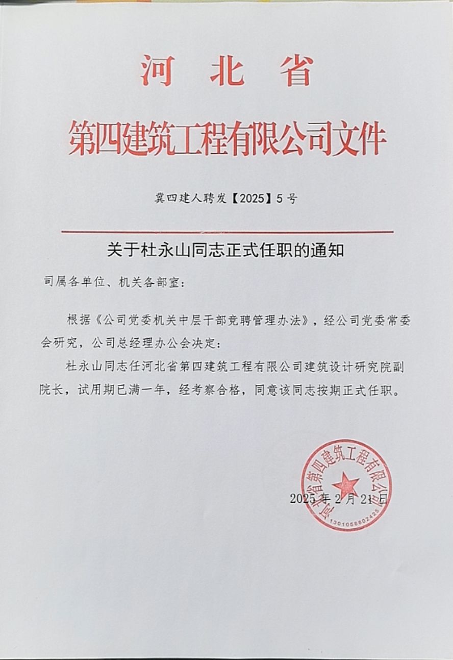 關(guān)于杜永山同志正式任職的通知